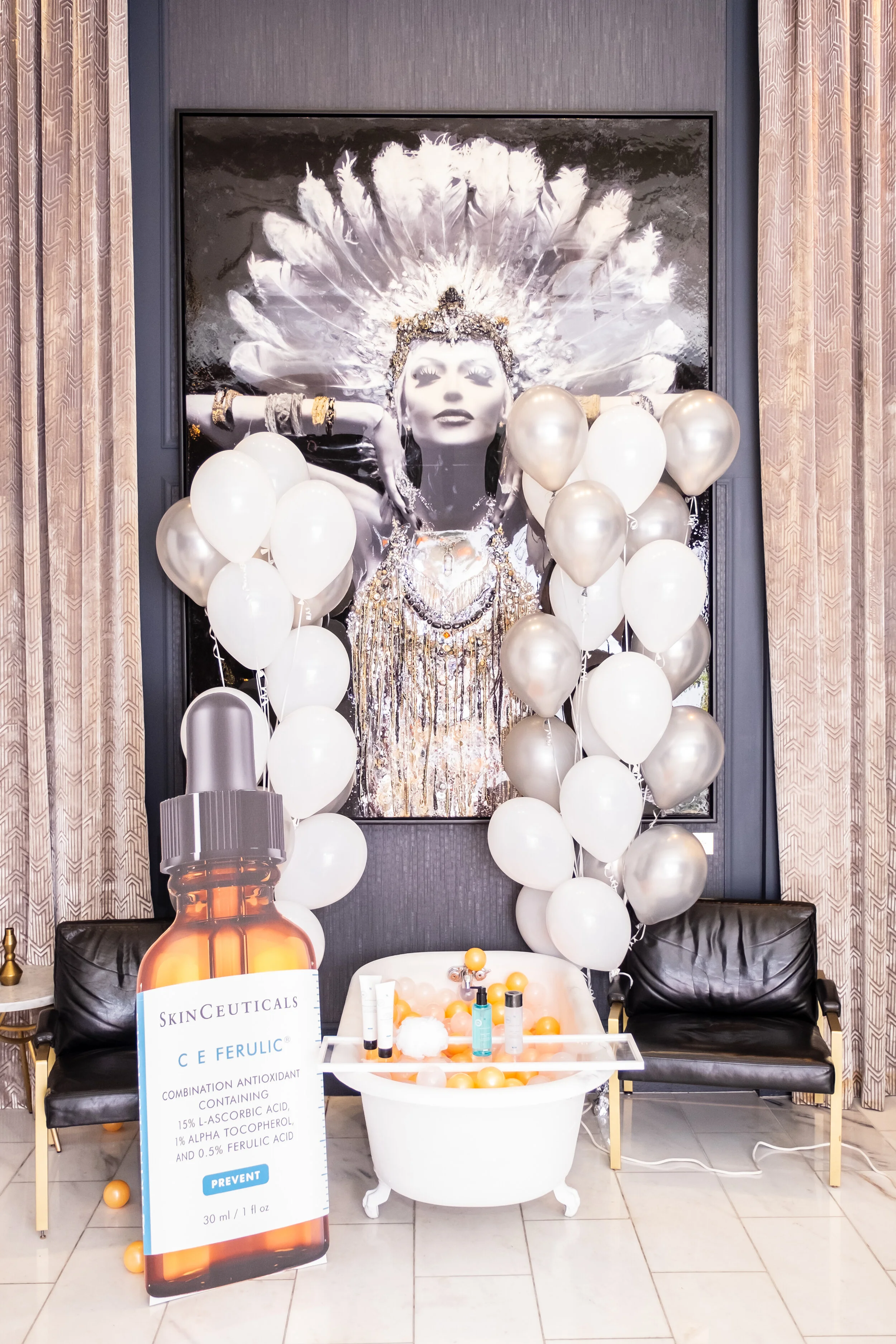 The 90s loved their bling, bling! As guests arrived, they walked under a stunning and massive rainbow balloon arch before walking the red carpet at check-in. For our VIP guests, rainbow wristbands were given out, complementing their perfectly styled 90s-themed costumes! At the end of the night, each guest was given a blue metallic swag bag filled with lots of full-size La Roche Posay products and other fun Pride-inspired goodies.